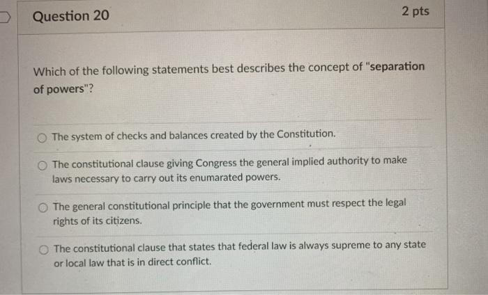 The Separation of Powers Best Describes